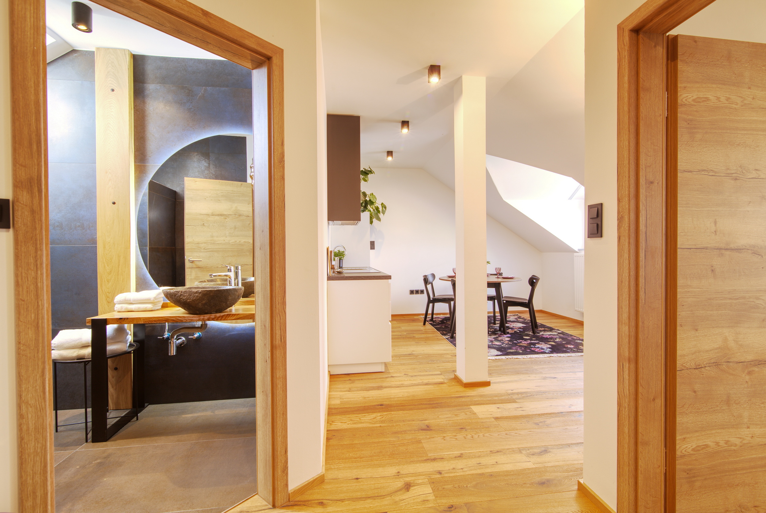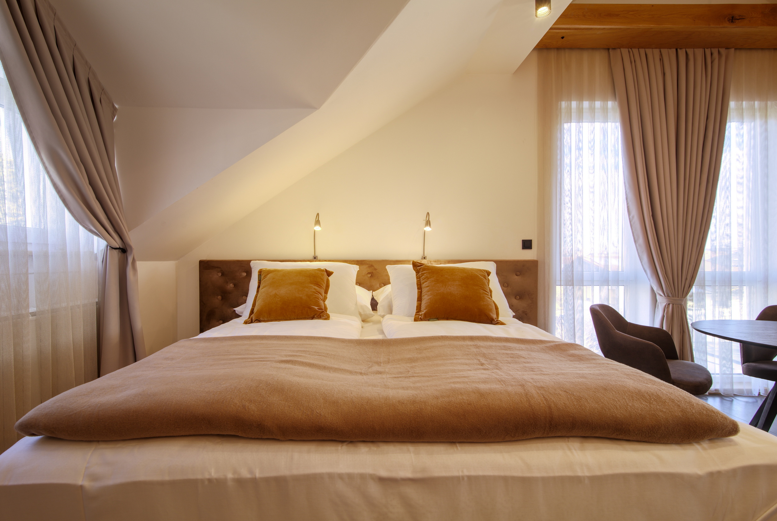 Naš superior apartma 2+2 je prostoren in popoln za družine ali skupine prijateljev, saj ima ločeno spalnico z zakonsko posteljo, lastno popolnoma opremljeno kuhinjo, raztegljivi kavč in klimatsko napravo. Imeli boste dovolj prostora za sprostitev in uživanje v stilu.